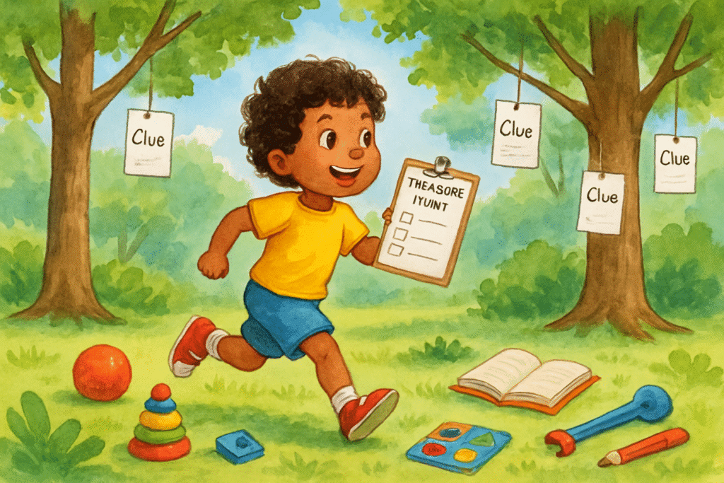 - Caça ao tesouro com objetos grandes e visíveis